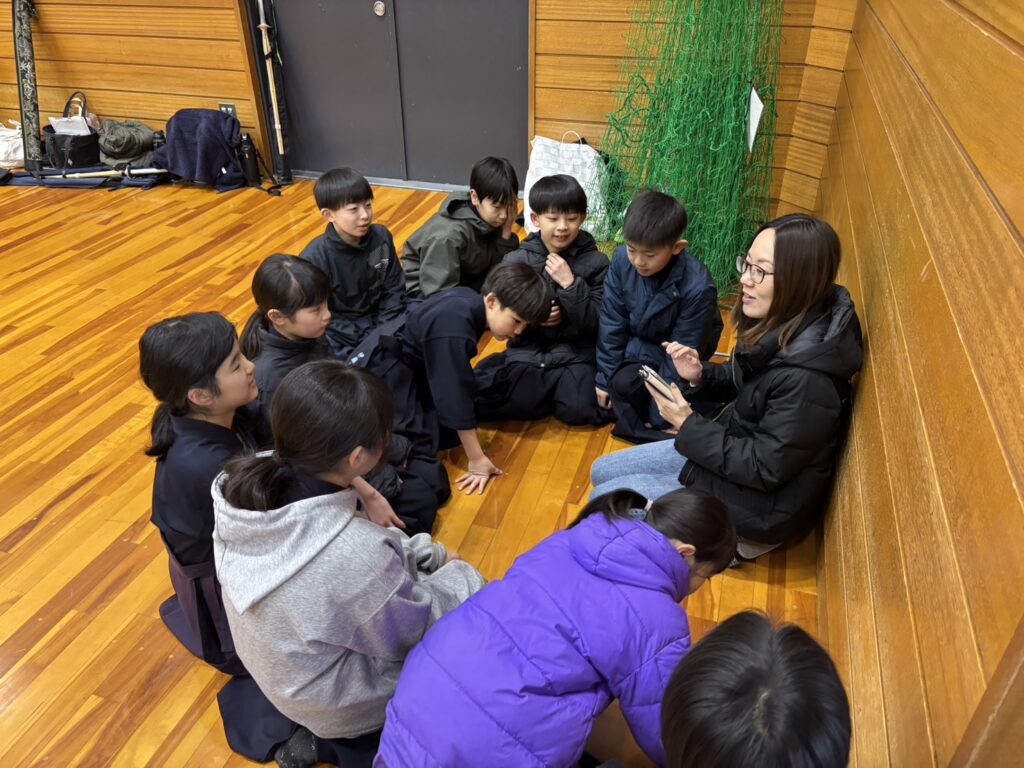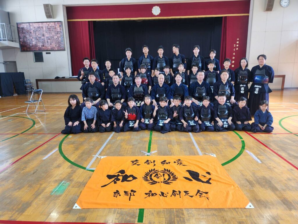 午前中、八幡市主催で親子スポーツ体験があり、和心剣友会からも指導者2名、子ども9名が代表として、参加したたくさんの方に剣道の魅力を伝える活動を行いました。